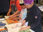 最初は、みなさん緊張した面もちでしたが、次第にリラックスムードになりました。だんだんと動作もスムースになり進行も思ったよりはかどりました。一人に一つオリジナルのケーキ寿司を完成させて、とても嬉しそうでした♪ みんなそろって「いただきま~す♪」