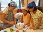 <内容>①夏休みに自分でカレーをつくってみよう ②卵の調理(卵のゆで時間)を学ぼう ③豆腐白玉に挑戦! ④ 野菜の切りかたを覚えよう